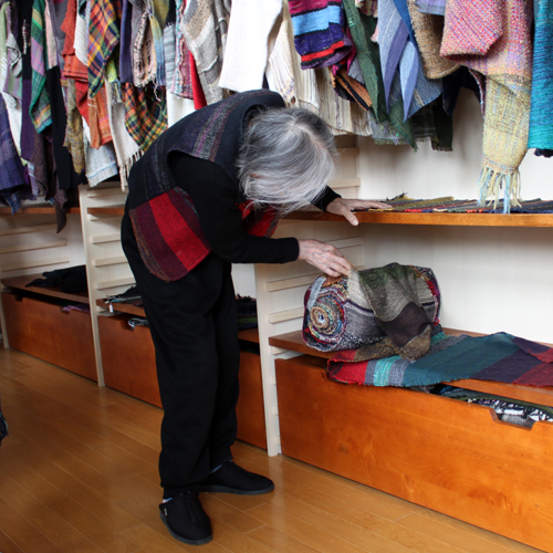 さをり作品の海の中を